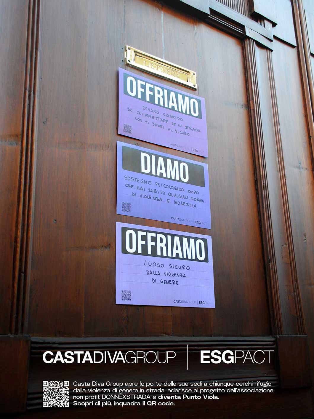 Casta Diva ha ideato una campagna di sensibilizzazione per VIOLA, app contro la violenza di genere in strada, che offre un servizio di accompagnamento in videochiamata, attivo 24/7.