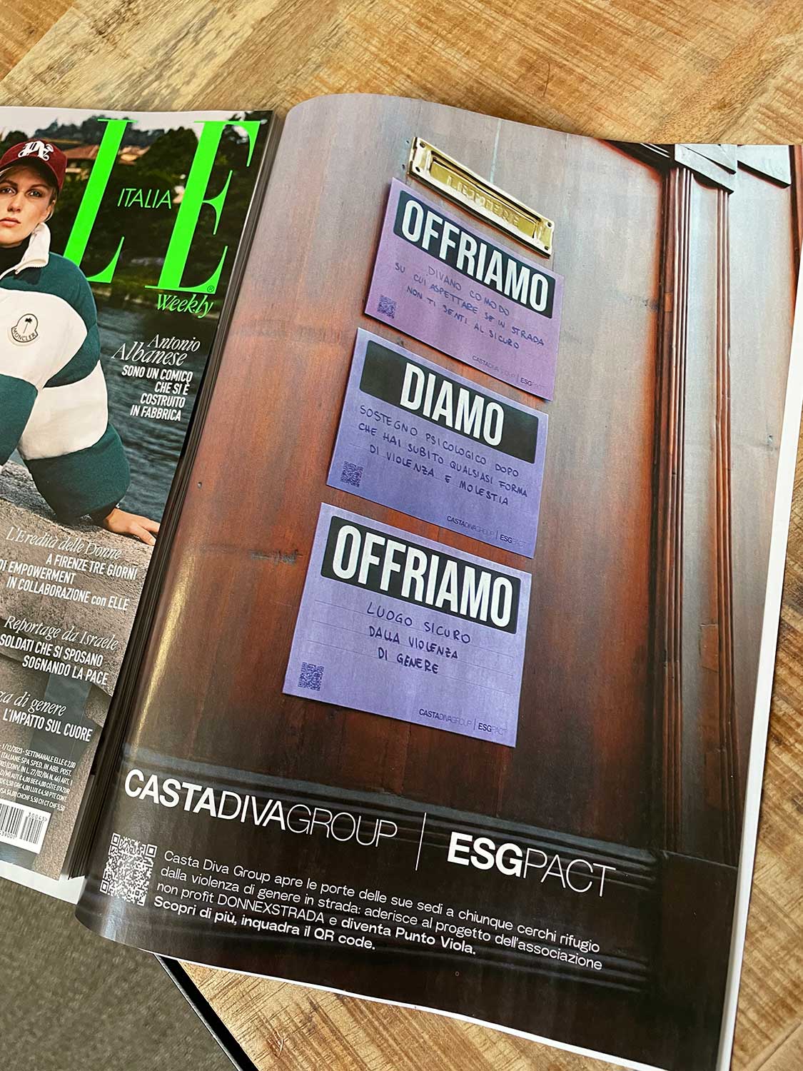 Il 25 novembre 2023, la nostra azienda ha comunicato questa iniziativa attraverso una press campaign su diverse testate giornalistiche, tra cui ELLE.