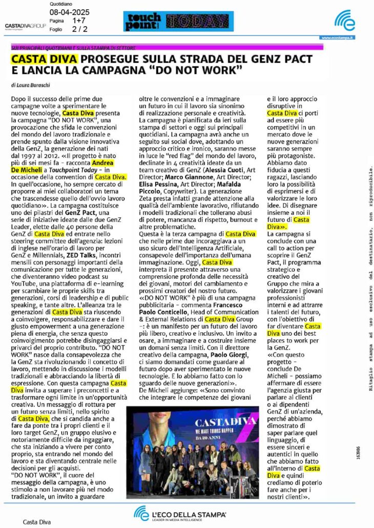 Casta Diva prosegue sulla strada del GenZ Pact e lancia la campagna “DO NOT WORK”