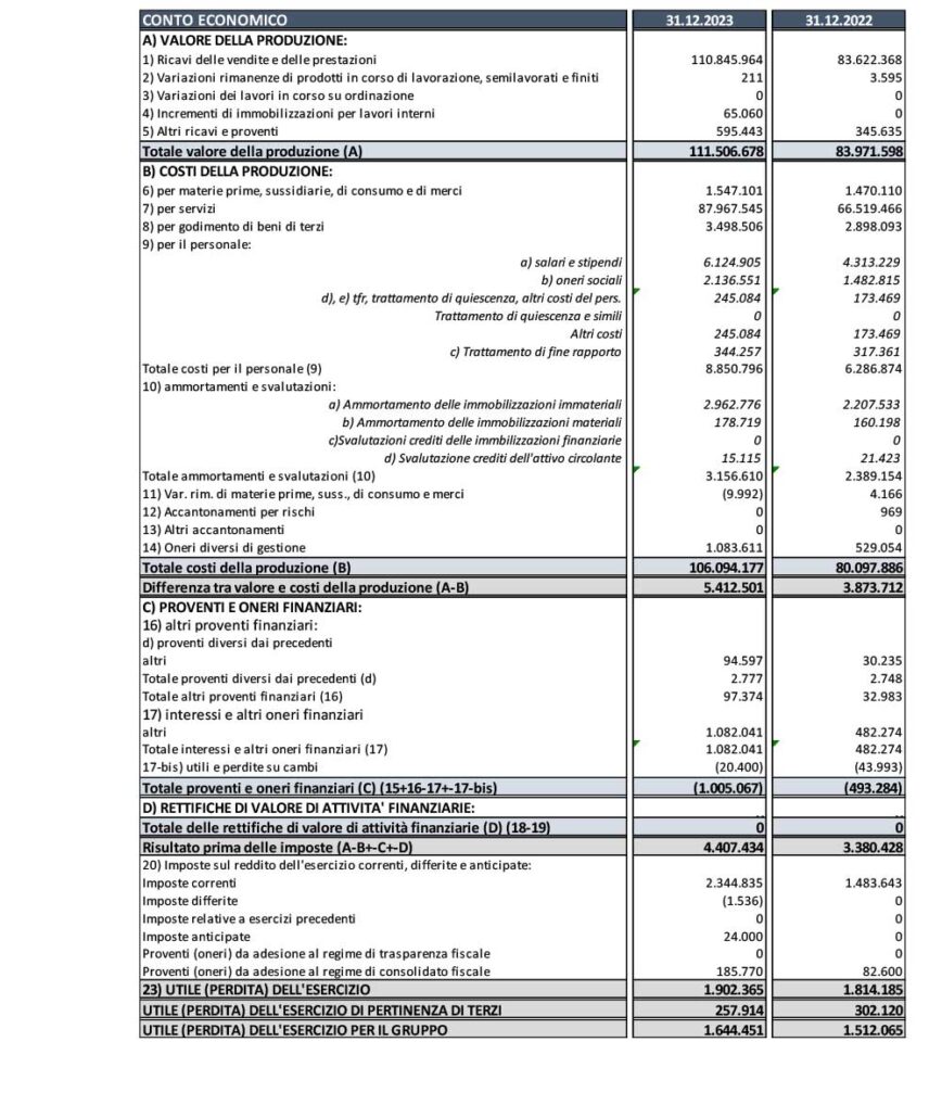 • Valore della Produzione: Euro 111,5 milioni (+33% su FY 2022: Euro 83,9 milioni)