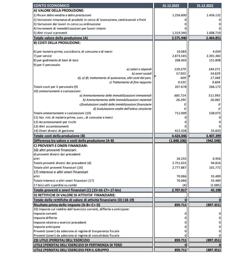 L’EBITDA è positivo ed è pari a Euro 8,6 milioni, in forte incremento rispetto al 2022 (Euro 6,3 milioni).