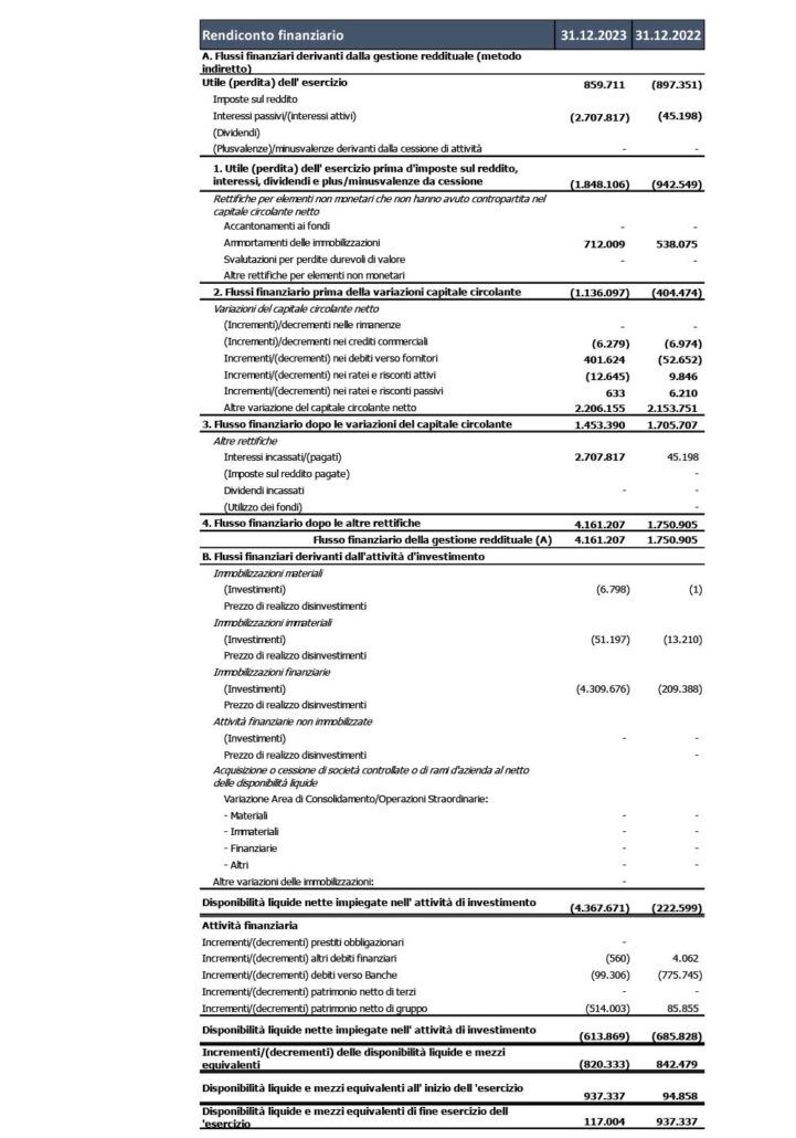 • PFN surplus/(indebitamento netto): Euro -5,6 milioni (PFN al 30.06.2023: Euro 0,9 milioni)