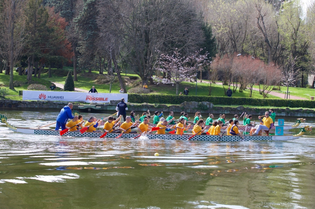 The creative idea, so as to involve both cultures, was “Dragon Boat”. This was an exciting competition which took place in boats with the form of dragons, derived from Chinese tradition, with 20 oarsmen, one helmsman and one drummer to beat out the rhythm.