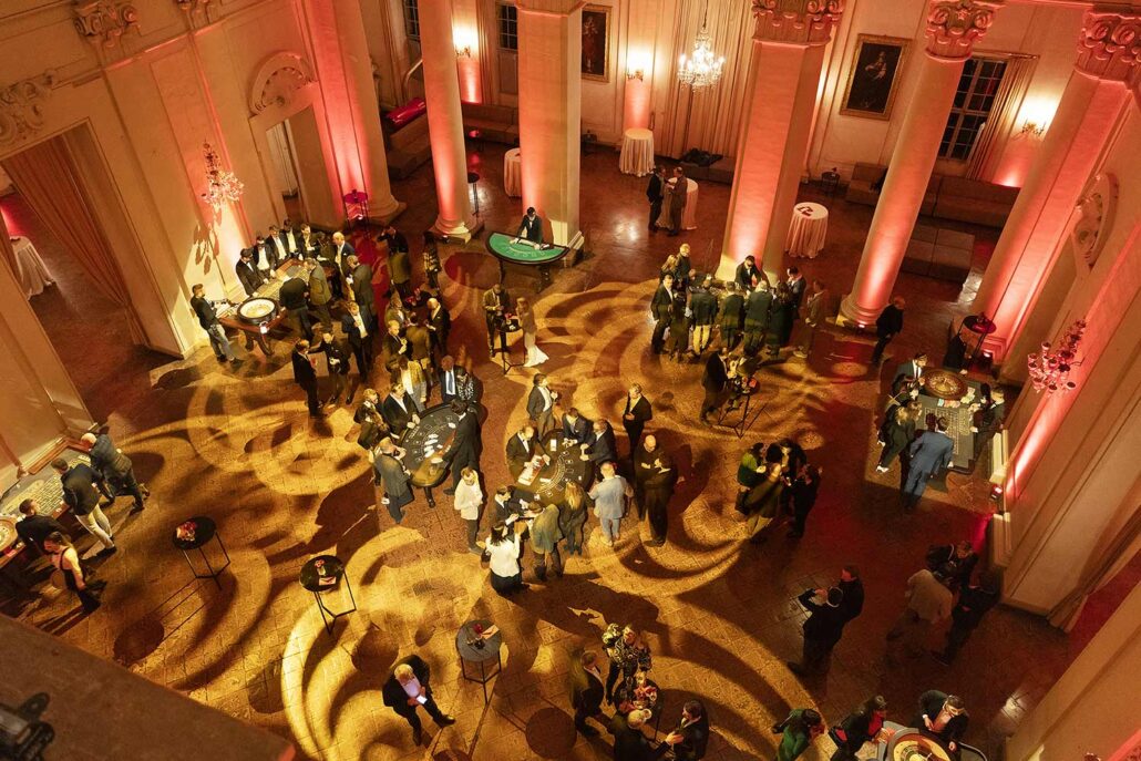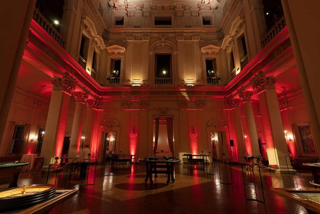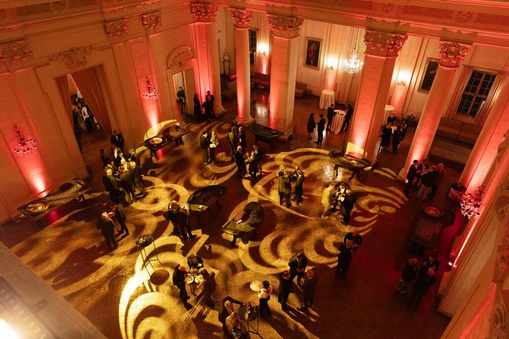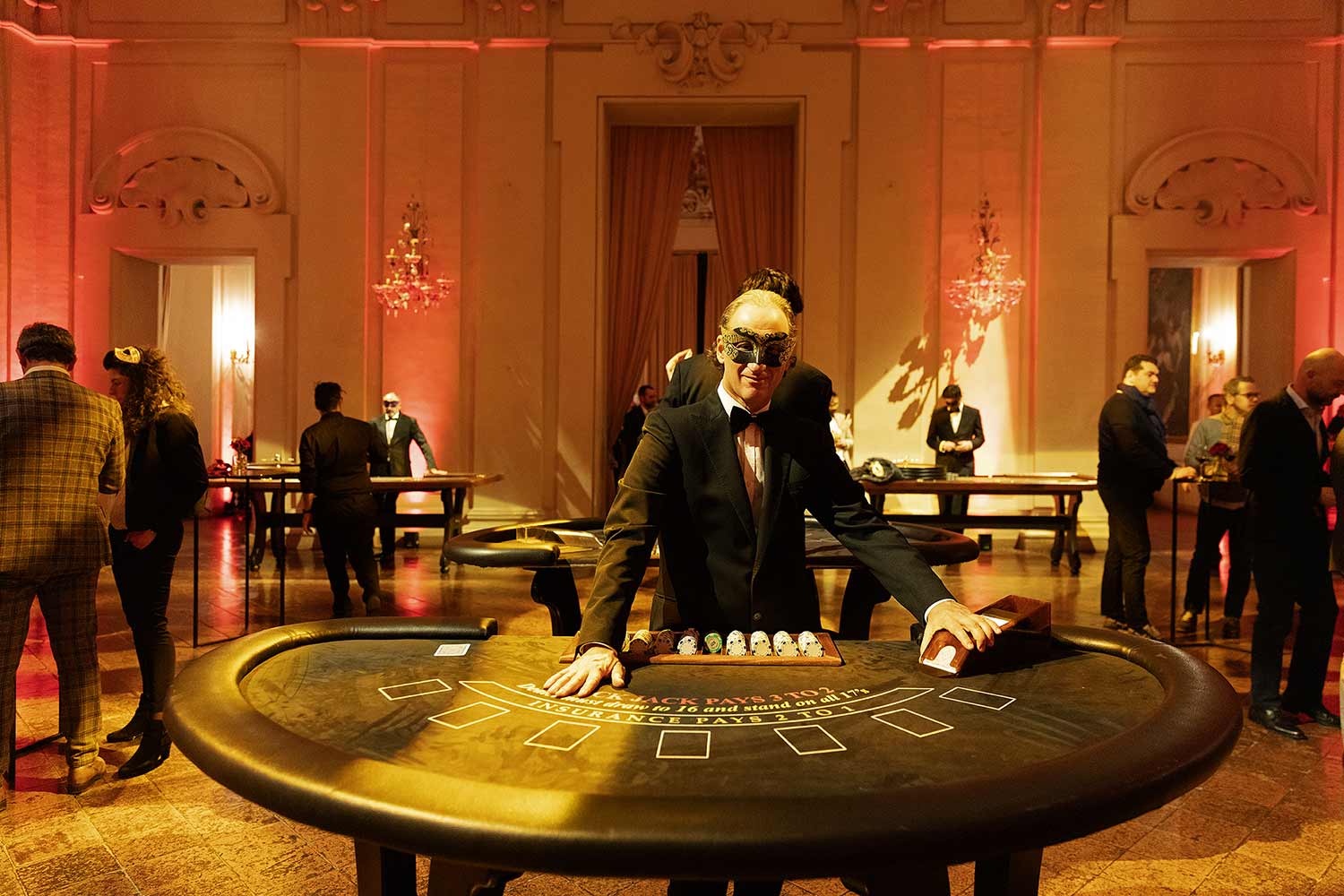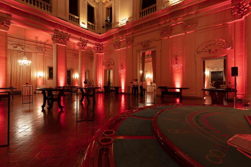 Per l’occasione è stato allestito anche un vero e proprio casinò: croupier mascherati hanno guidato la sorte degli ospiti tra giri di roulette e turni di black jack.