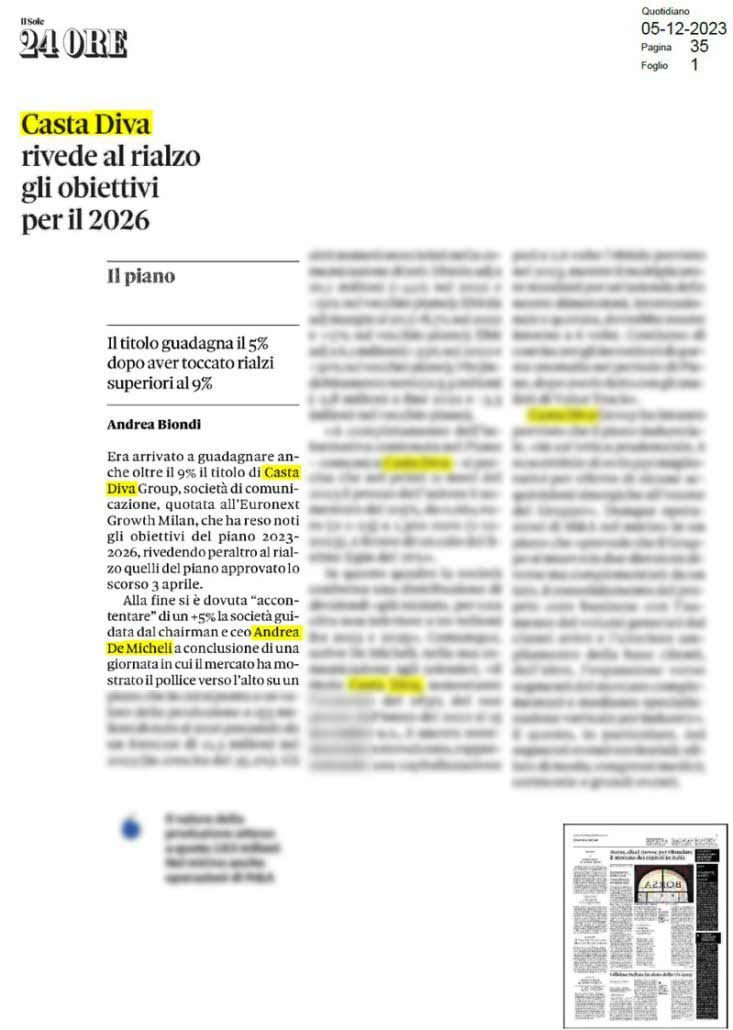 Casta Diva – Importanti prospettive nel Nuovo Piano Industriale al 20...
